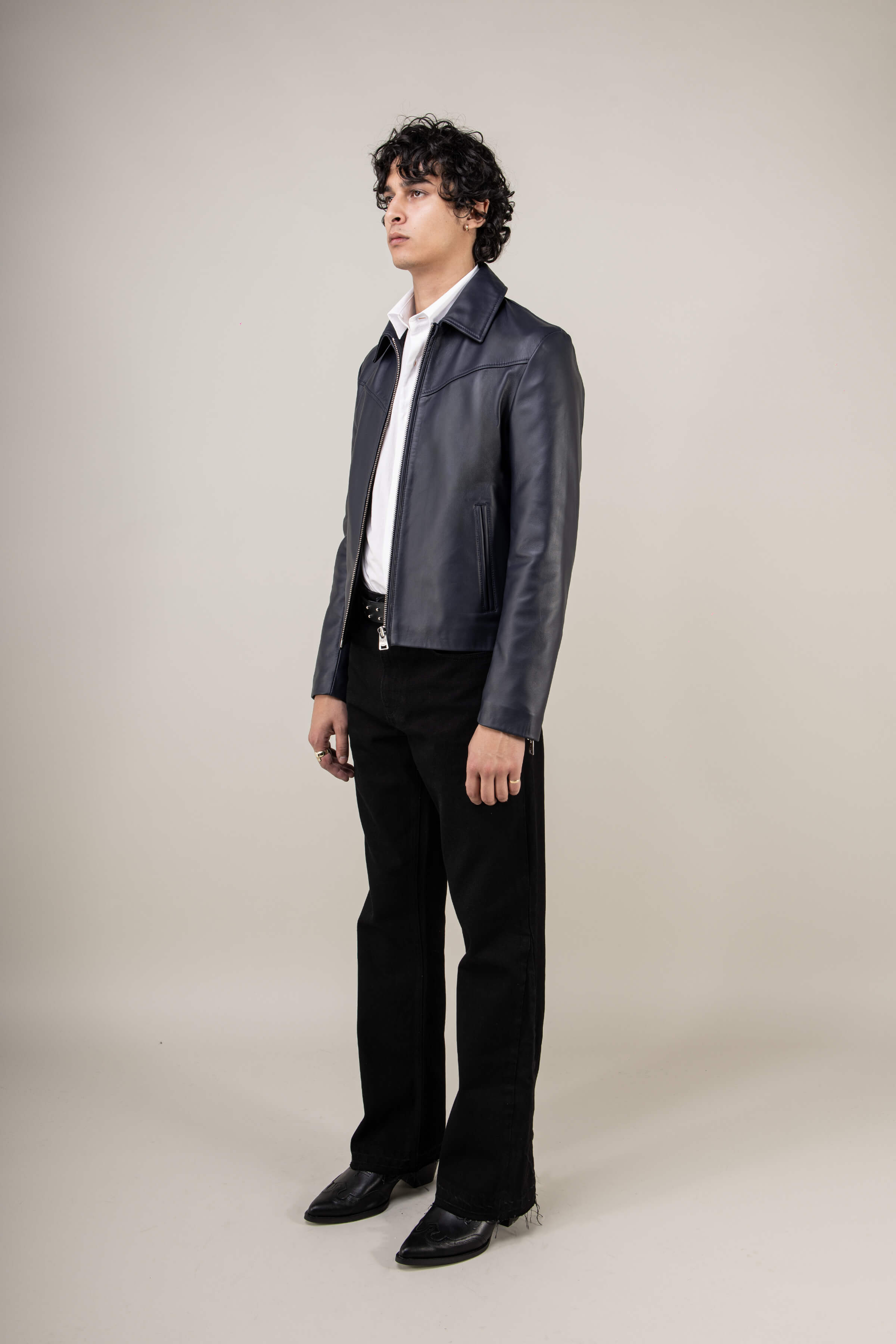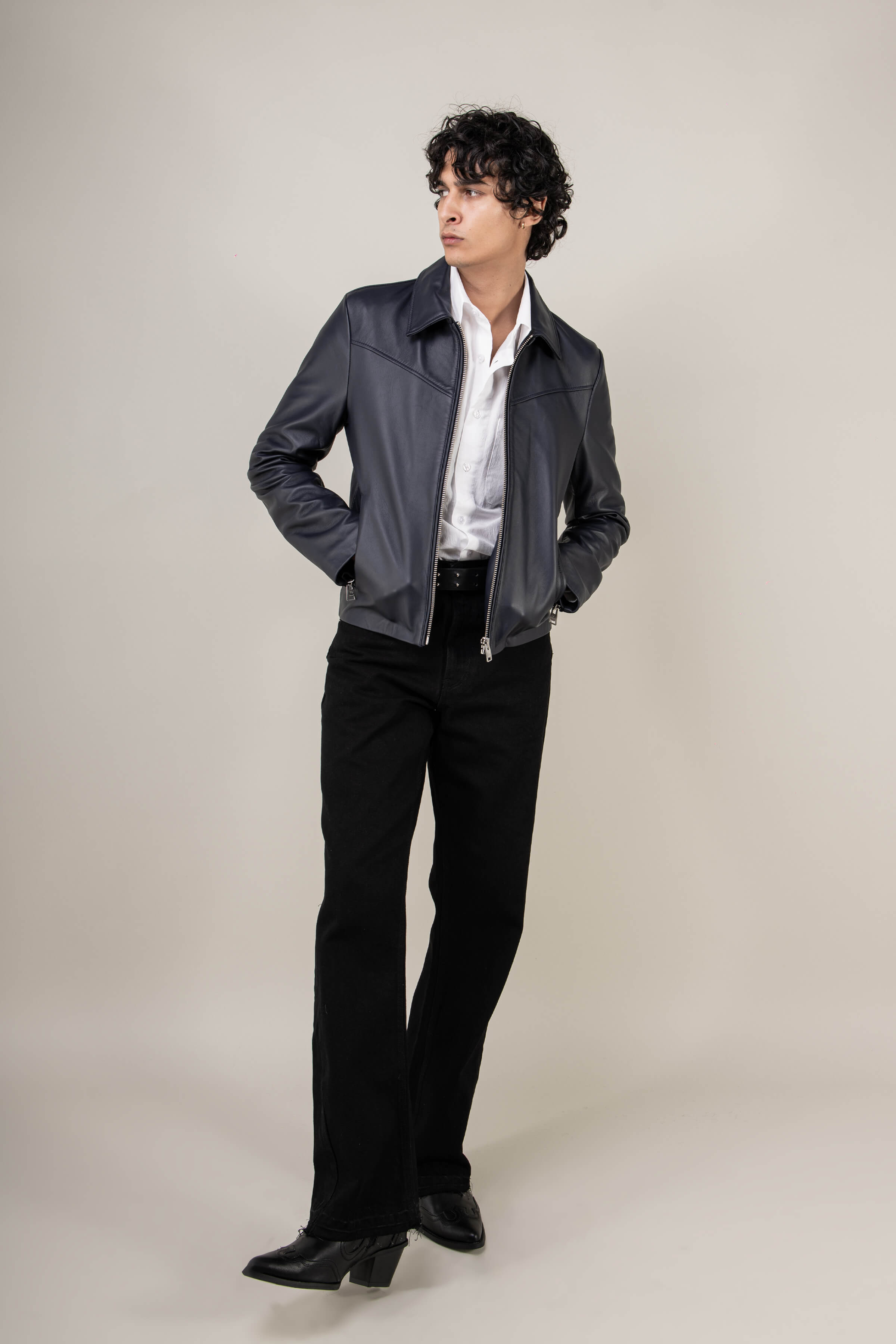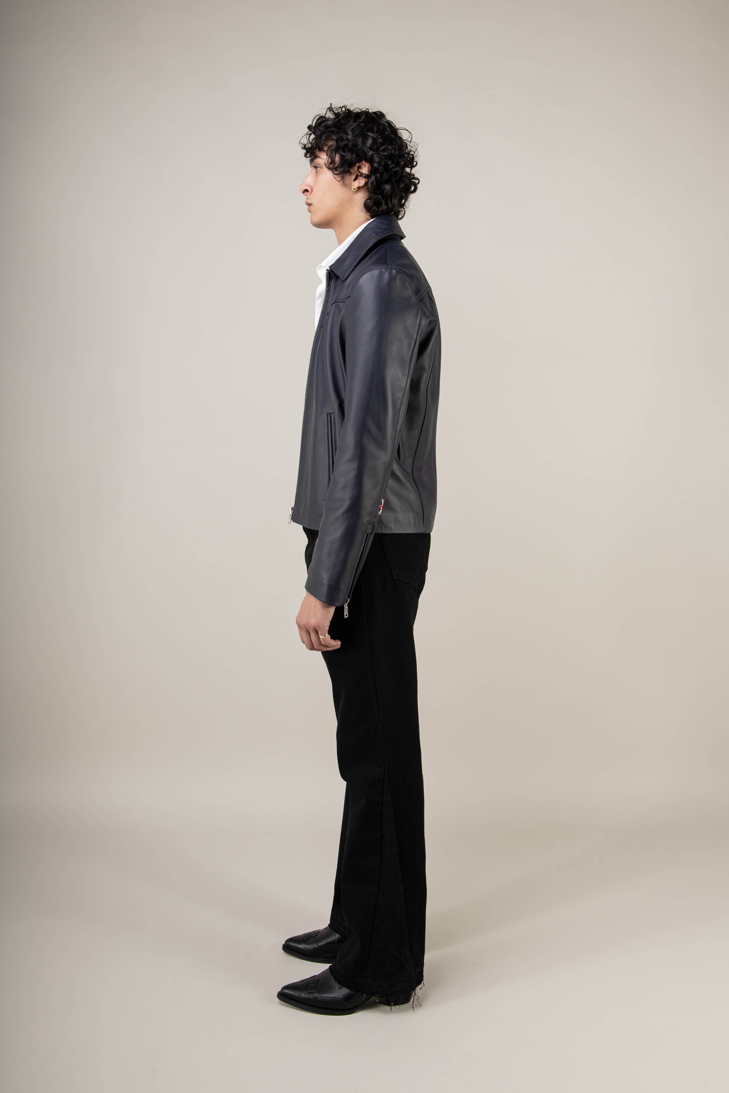 brings a contemporary twist to a timeless classic. Crafted from the finest English lamb’s leather, this jacket has been re-engineered to combine sharp tailoring, premium materials, and effortless versatility. The result is a men’s navy leather jacket that feels as luxurious as it looks: sleek, refined, and ready for any occasion.