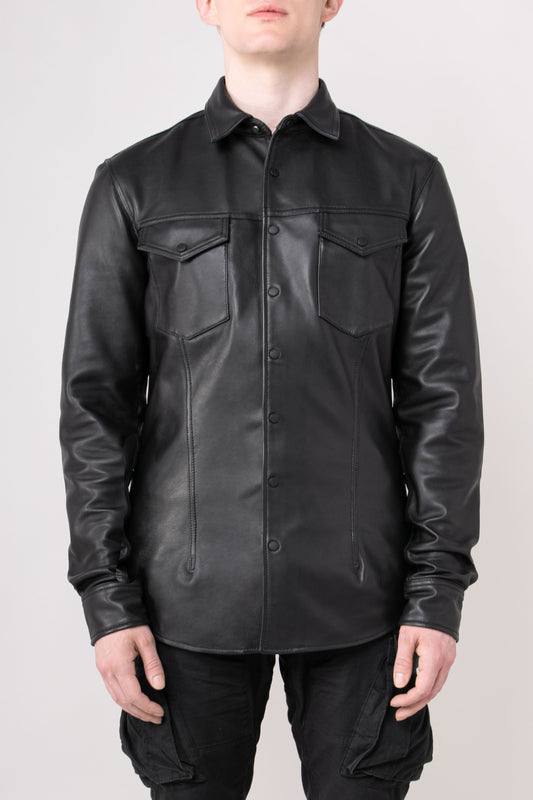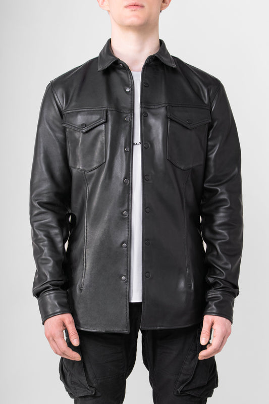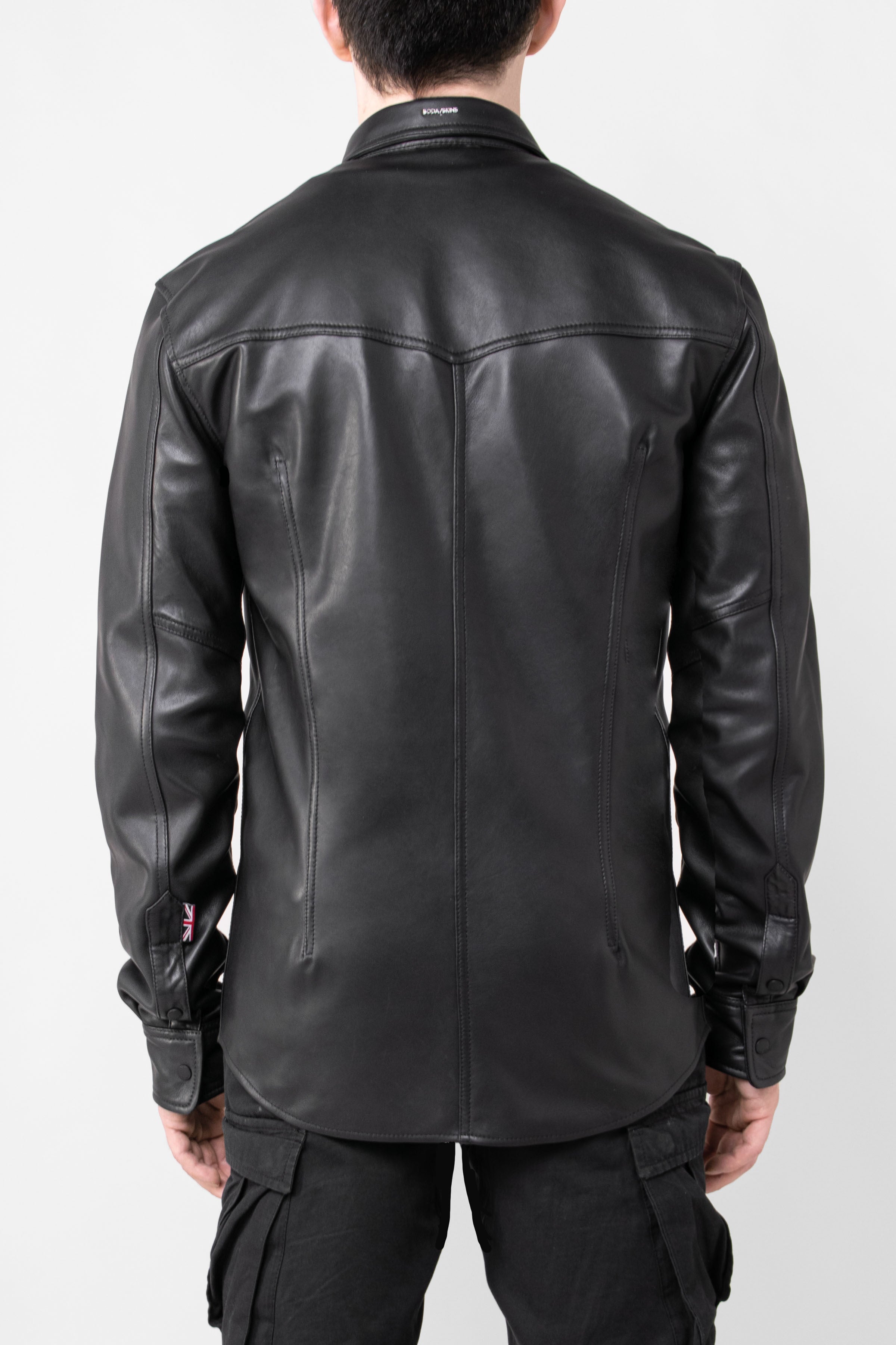 The BODA Leather Overshirt is a wardrobe staple made luxury; crafted from 100% lambs leather with black matte press studs, functional chest pockets and a branded metal plate at the collar. Designed to last, the leather has an innovative sweat resistant coating along with underarm mesh ventilated eyelets. Its relaxed fit and versatile functionality infuses off-duty style with modern statement, making everyday layering effortless.