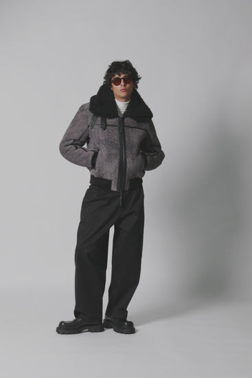 WIR STELLEN VOR: DIE ASTEROID. BODA SKINS'S LUXUS, 100% AUSTRALISCHE SHEARLINGS A-KLASSE BOMBER JACKE, DIE NICHT VON DIESER WELT ZU SEIN SCHEINT. SIE IST AUS STEINGRAUEM NUBUK LEDER UND GARANTIERT DIR WÄRME, WENN DU SIE BRAUCHST UND DIE AUFMERKSAMKET DIE DU VERDIENST. ASTEROID BIETET ALLES, WAS MAN VON EINER JACKE AUS DER ZUKUNFT ERWARTEN WÜRDEN, EINSCHLIEßLICH EINES DOPPELTEN LUXURIÖSEN SHEARLING-KRAGEN MIT LEDERSCHNALLEN UND ROSTBESTÄNDIGEN MATTSCHWARZEN REIßVERSCHLÜSSEN MIT ZINKBESCHICHTUNG. MIT DIESER JACKE MACHST DU EIN STATEMENT.