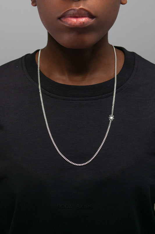 The Scarab Chain Necklace can be worn as a charm of luck and resilience. Associated with the most important god in ancient Egyptian history, Ra, the scarab beetle is a symbol of resurrection and eternal life, representing the cycle of life and the strength of overcoming life’s adversities. The powerful offset scarab is balanced by minimalist detailing and has been meticulously handcrafted by our skilled artisans in 925 sterling silver to retain its beauty and durability, achieving an undeniably versatile structure that will hold a special place in your jewellery collection for years to come.