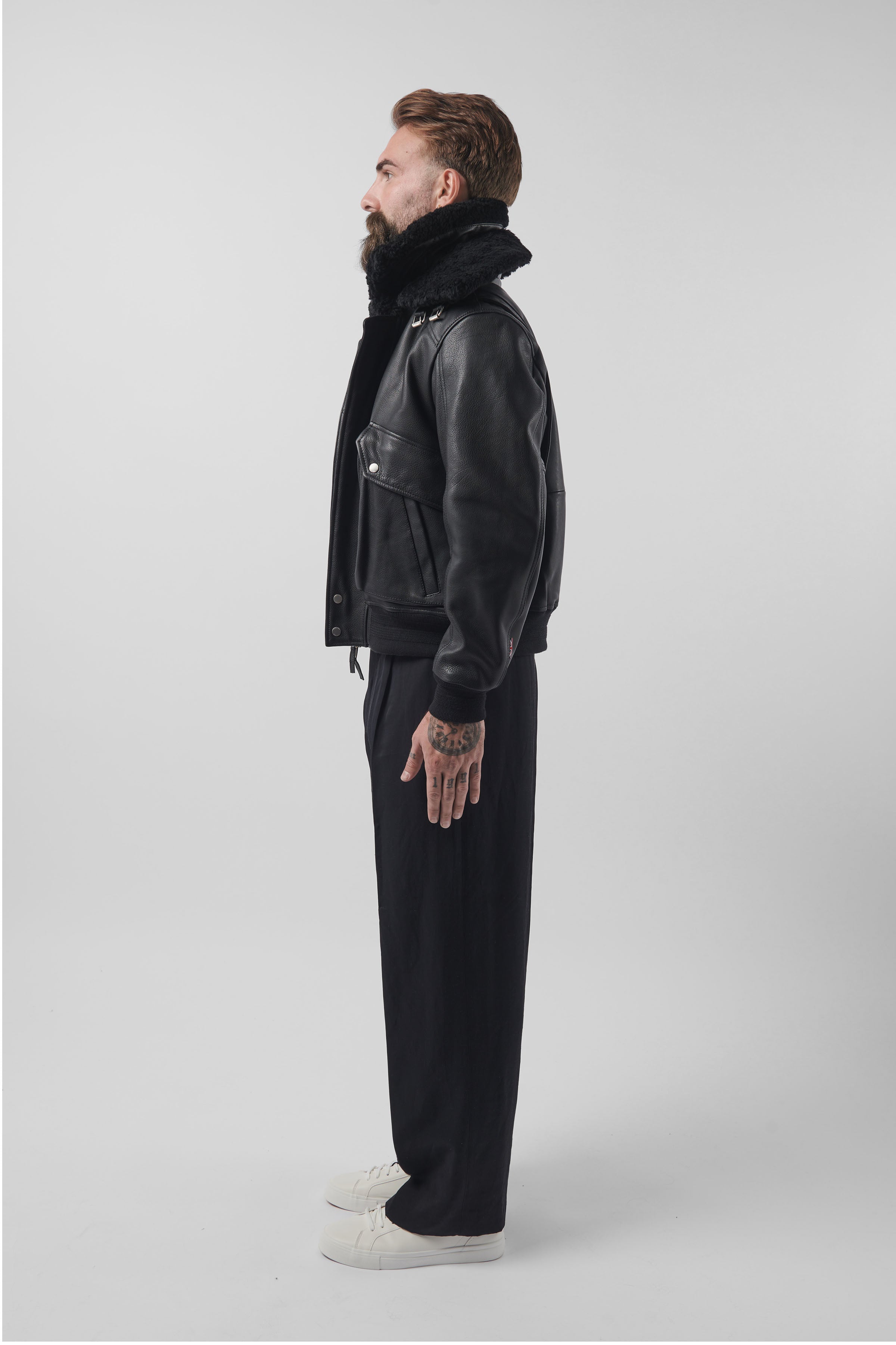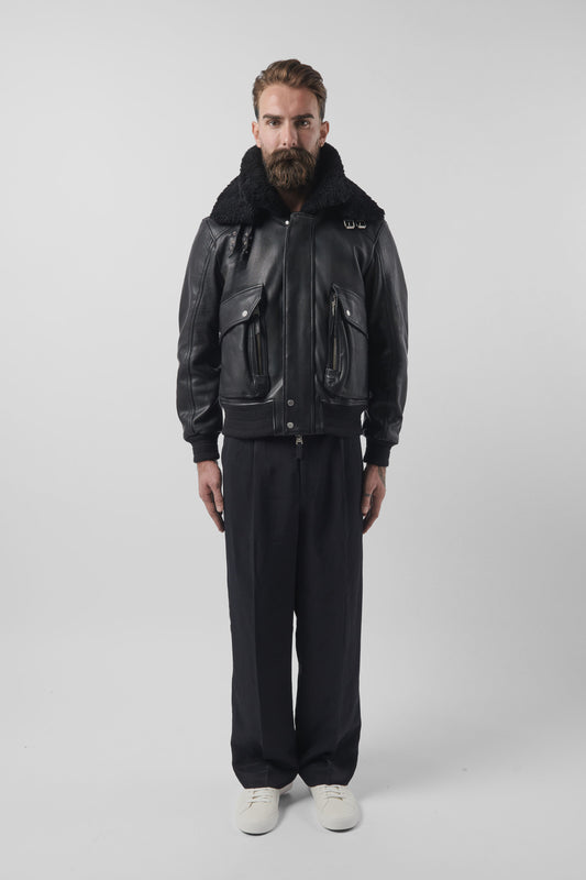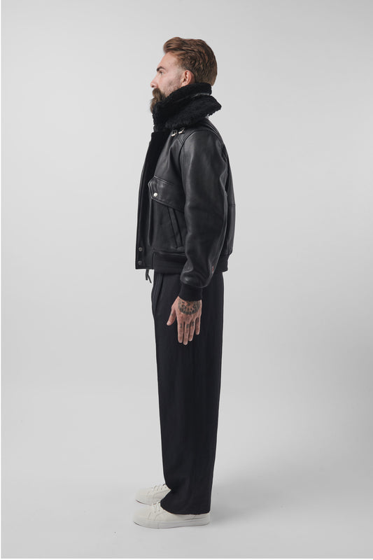 Our latest statement shearling, the Spitfire, takes on a classic flight jacket silhouette infused with BODA SKINS edge. The Spitfire embodies all the elements of quality, functionality and exclusivity that you'd expect from our signature shearling styles; crafted from 100% Cows Leather with a bold double shearling collar, statement pockets and contrasting premium silver branded hardware throughout.