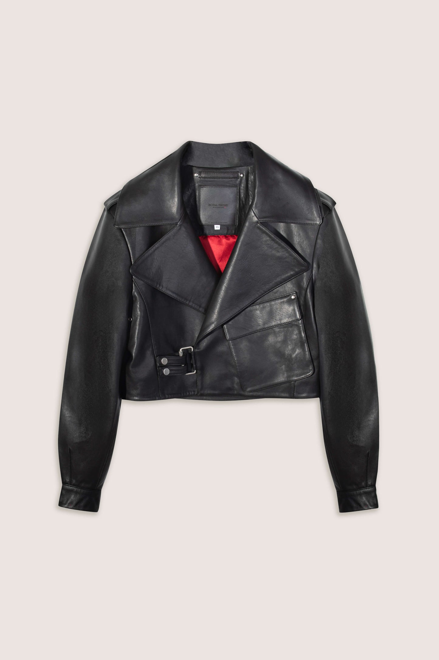 Designed to seamlessly integrate into any modern wardrobe, the Cropped Blouson leather jacket offers endless styling options, whether you're dressing it up with tailored pieces or down with casual basics. The minimalist aesthetic makes it an ideal choice for those who value elevated simplicity and understated luxury in their everyday wear.