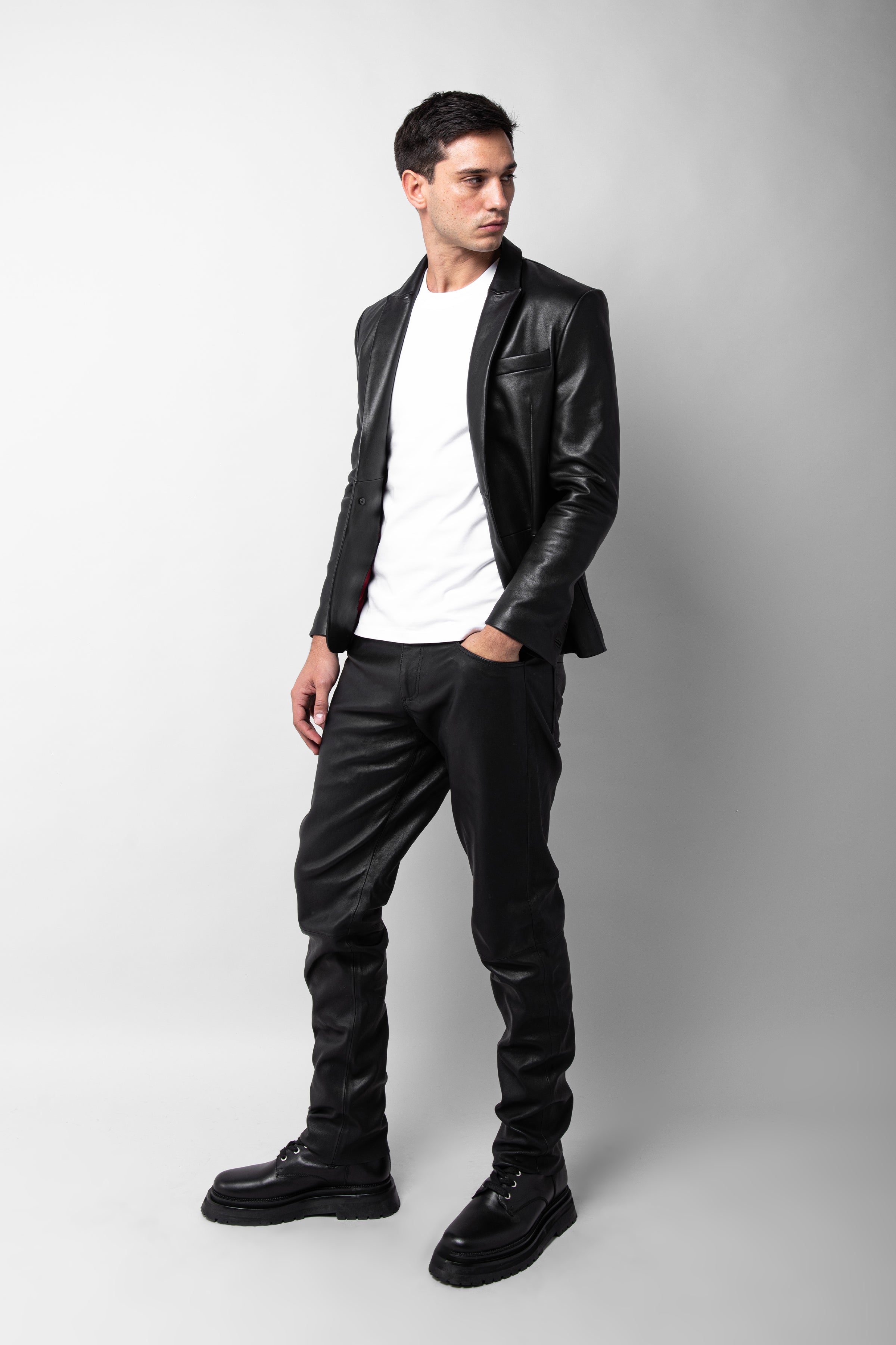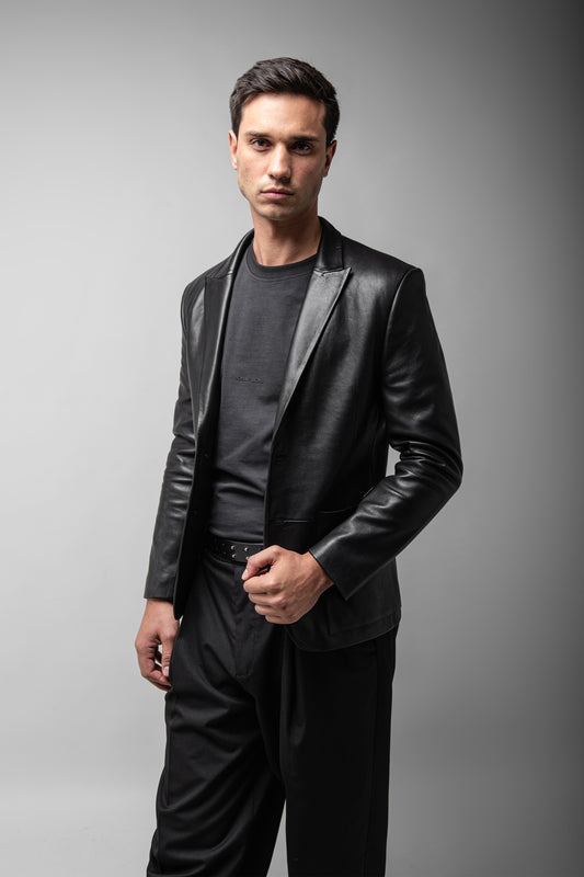 Expertly crafted from premium English lambskin leather, this tall men’s leather blazer delivers both luxury and durability. The supple lambskin retains its structure while providing a comfortable fit, ideal for elevated everyday wear and smarter occasions alike. A sharp, symmetrical collar, clean lapels, and minimalist leather detailing create a sleek profile, tailored to complement the taller physique without compromising on movement or comfort.