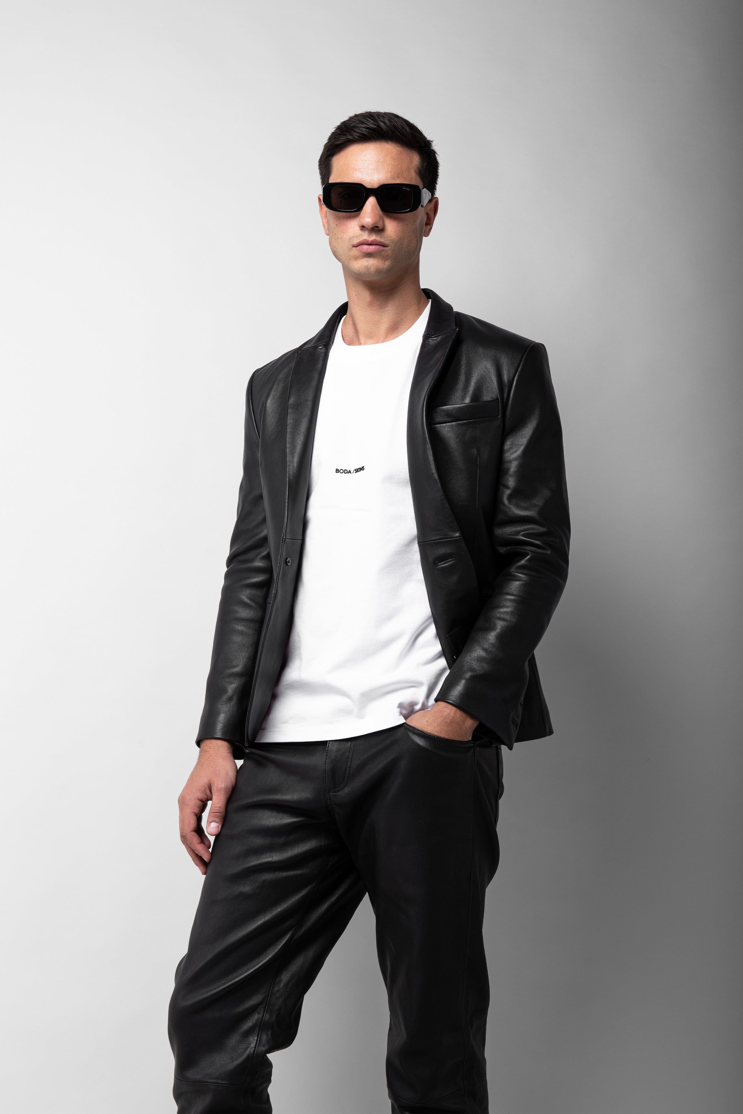 Elevate your wardrobe with a tailored leather blazer that combines classic menswear elements with iconic BODA craftsmanship and attitude.