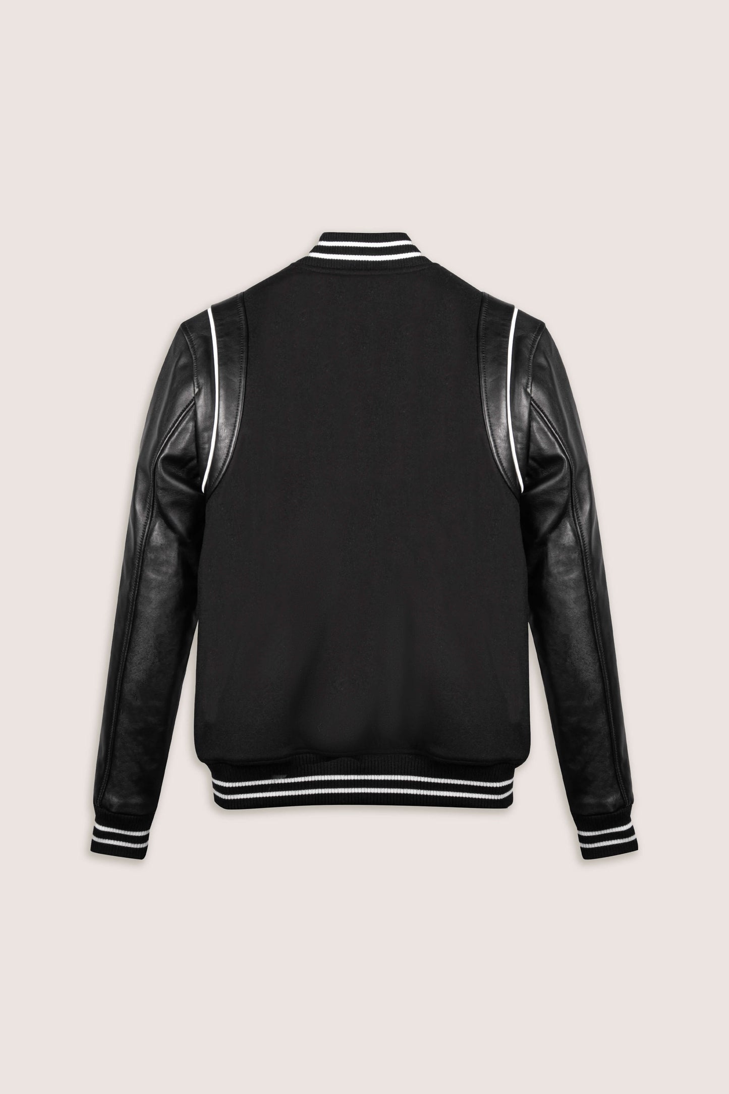 Crafted from 100% premium sheepskin leather, the BODA Varsity Tall offers a luxe finish and superior durability, while the full natural sheepskin lining delivers unmatched comfort and warmth. The jacket’s standout black and white leather design pays homage to traditional varsity styles, yet feels thoroughly modern with its sleek, monochrome twist.