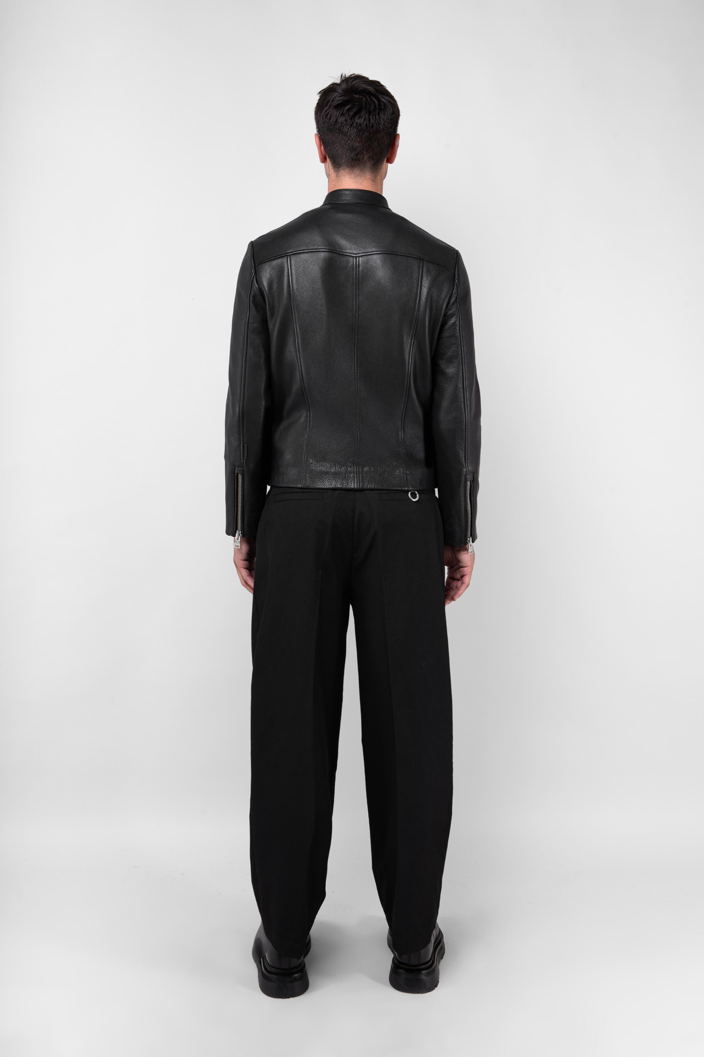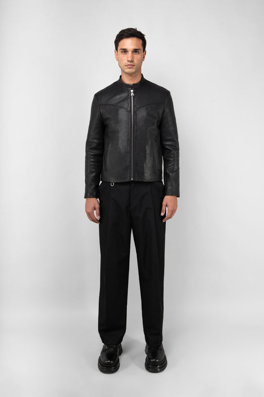 The Racer is a re-imagined take on our favoured Hendrix jacket. Inspired by iconic racer silhouettes, its sleek appearance is complimented by a classic band collar with the addition of a D-ring and O-ring for accessory attachments. Our minimalist design is crafted from premium cow grain leather and features a comfortable viscose twill lining; enhancing its versatility and timeless structure.