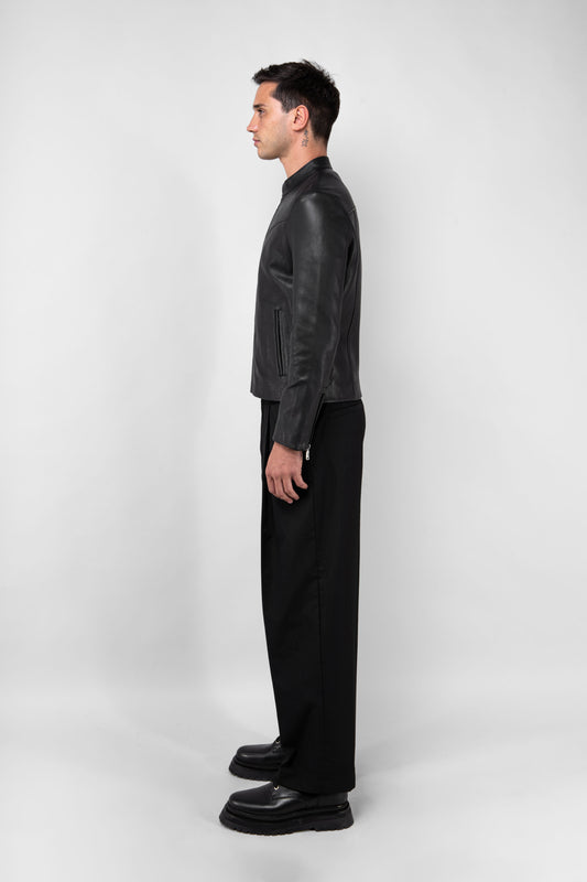 Refined Racer Collarless Leather Jacket