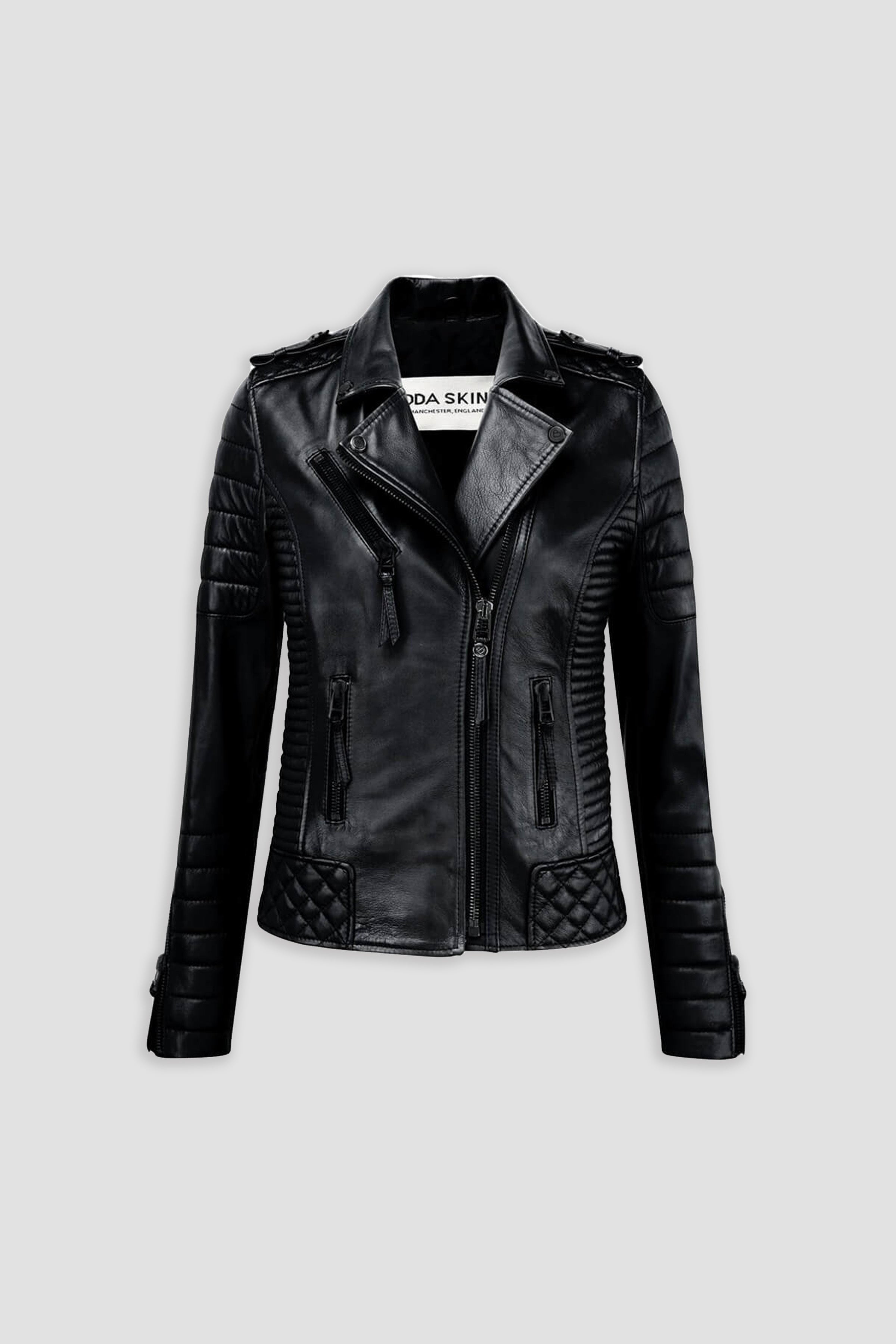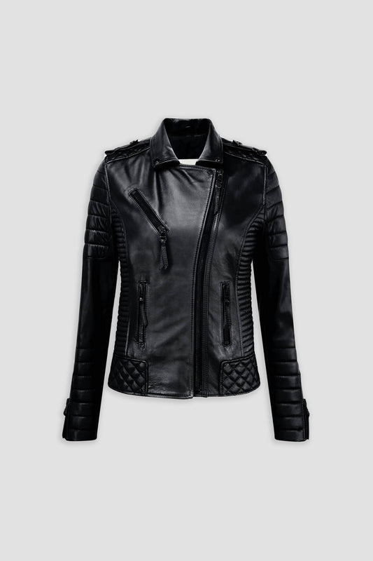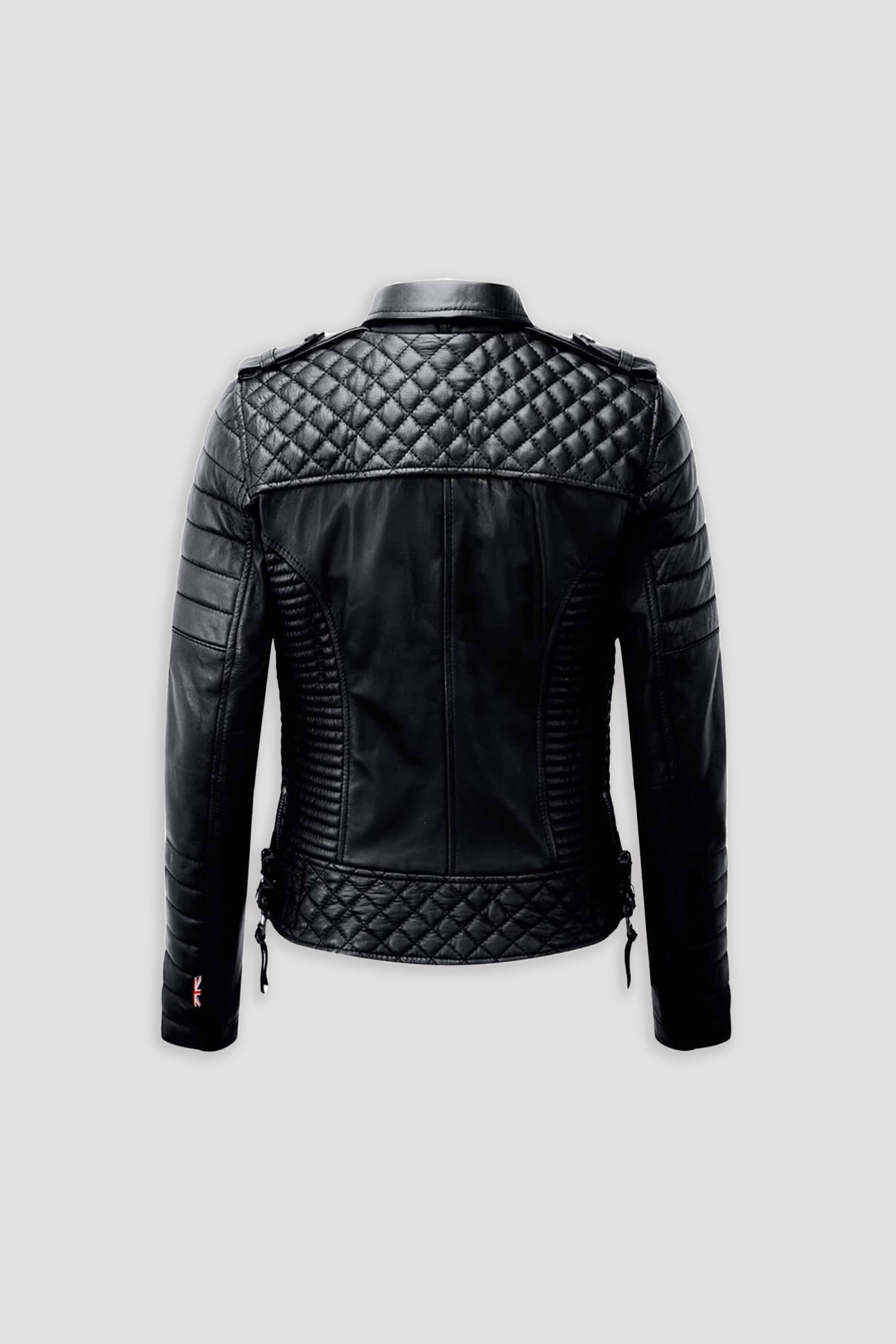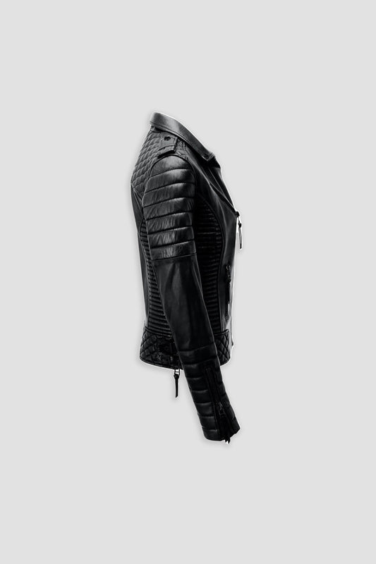This limited edition biker jacket is handcrafted from supple, full-grain 100% Napa Sheepskin leather, featuring iconic quilted panels and finished with platinum hardware.