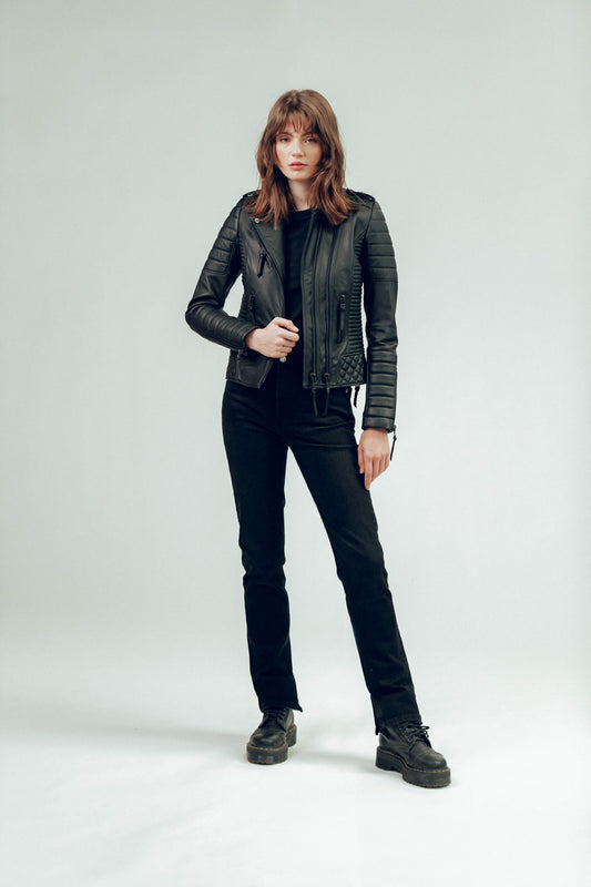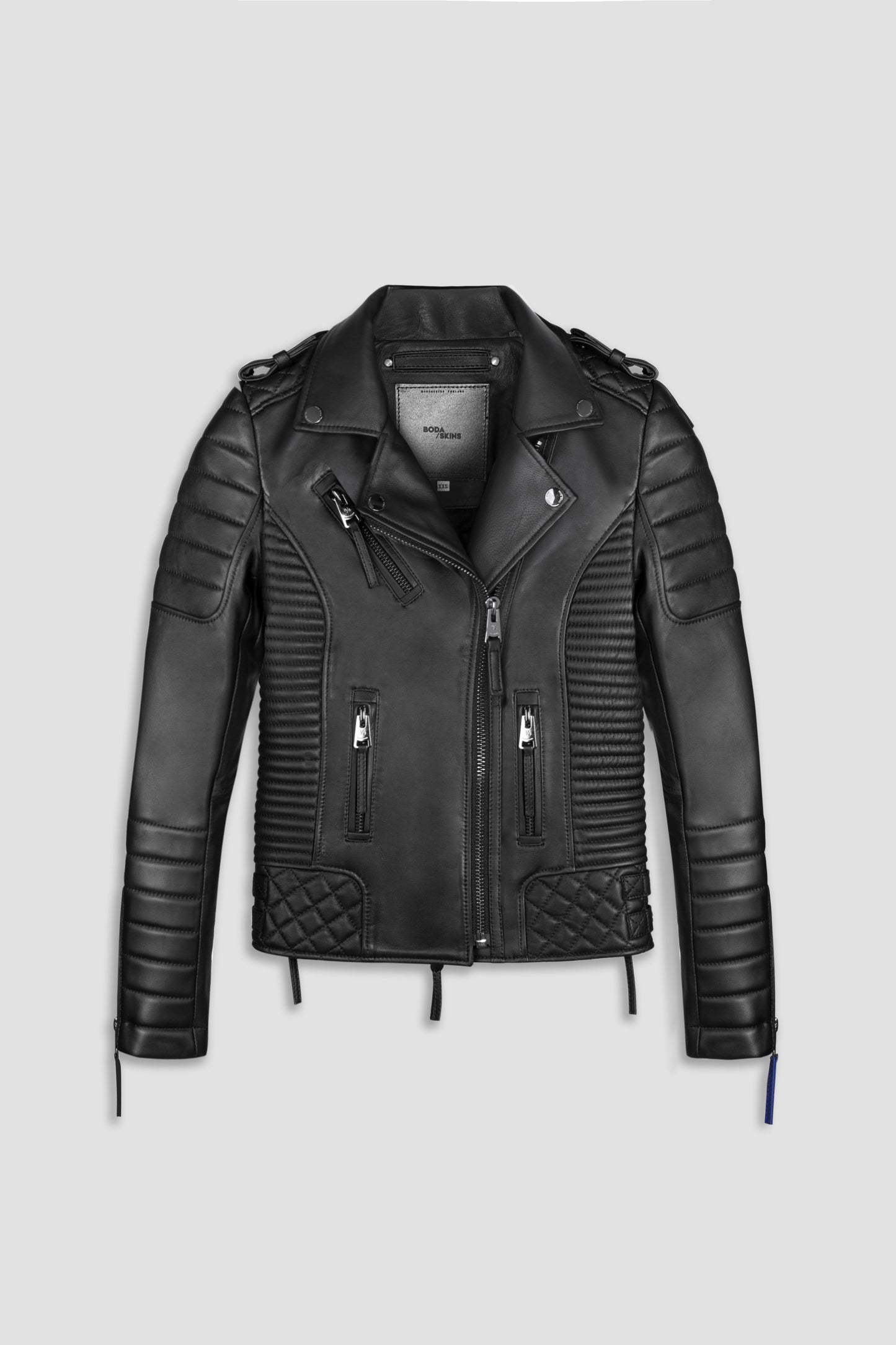 Our best-selling leather, the Kay Michaels is here with an improved fit and elevated gloss black branded hardware. The BODA-favourite maintains improved detailing on the shoulders, along with ribbed detailing on the arms and side panels. The Premium Cotton interior features an internal pocket designed for all phones and card-holders and padded, quilted detailing on the lining for superior comfort. Zips on the jacket cuffs can also be adjusted, allowing room for extra layering when needed.
