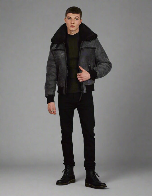Asteroid, the BODA SKINS luxury 100% premium A-grade sheep shearling bomber jacket that's out of this world. This full body asteroid stone grey nubuck bomber jacket is guaranteed to make you stand out from the crowd and keep you warm when you need it the most. Asteroid boasts everything you would expect a jacket from the future to have, including a double lux shearling collar with leather buckles and rust proof zinc alloy based matte black zips throughout. Get ready to make a statement.