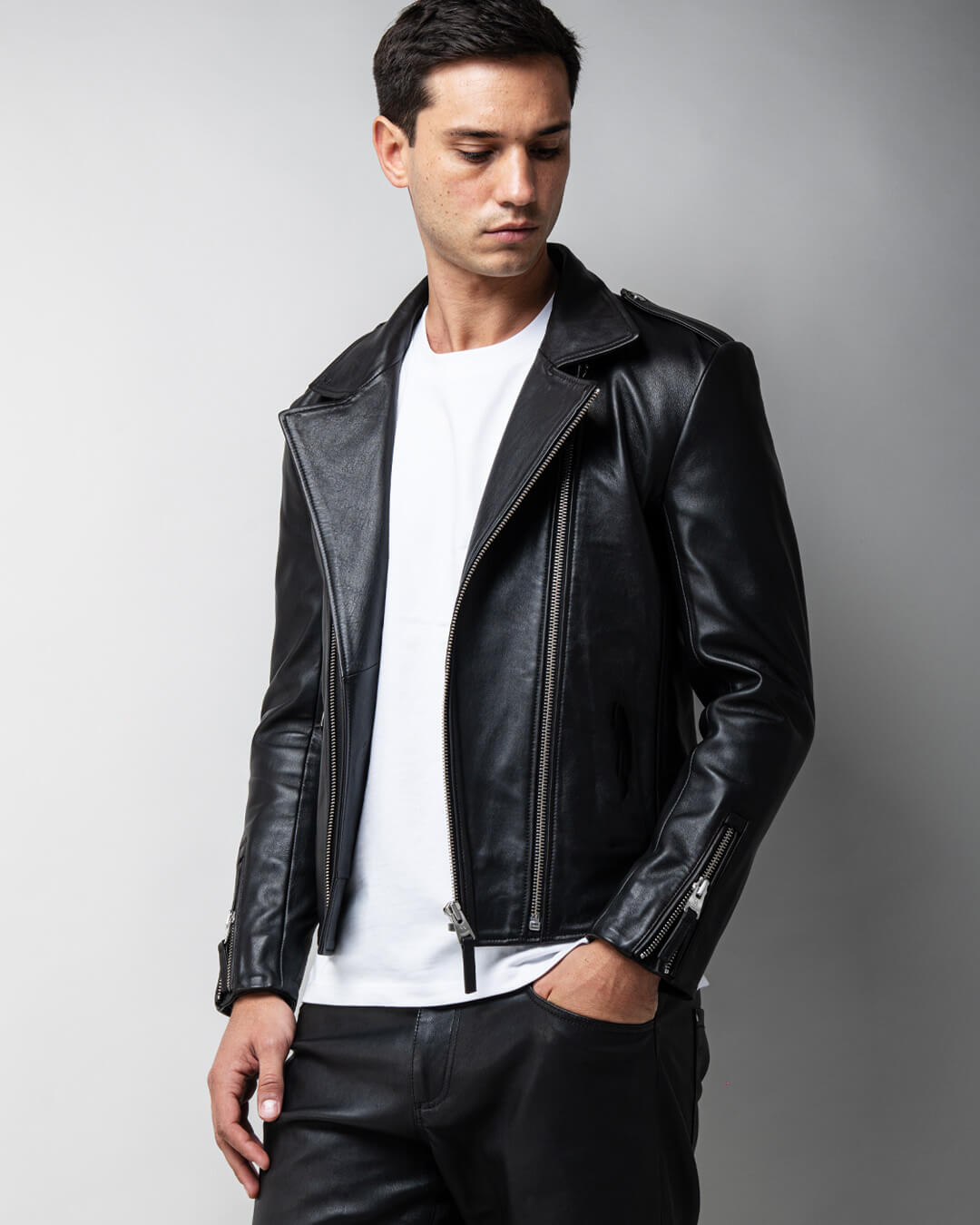 Designed for those who lead, not follow, the Outrider is a fearless evolution of the classic biker jacket, re-engineered to balance rebellion with refinement. Crafted from 100% British lambskin leather, this jacket embodies precision, movement, and unmistakable confidence. The result is a statement piece that redefines what modern luxury leatherwear can be: structured, powerful, and wearable.