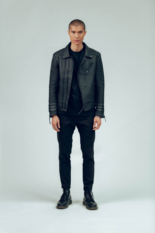The Alexander 3.0 has been refined with an improved fit and premium matte black branded hardware. Maintaining its classic biker features, The Alexander features ribbed detailing on the arms and side panels, and buckle details and zips that ensure flexibility for layering. The interior is made with a premium cotton lining and features spacious pockets that are designed for all mobile phones and card-holders.