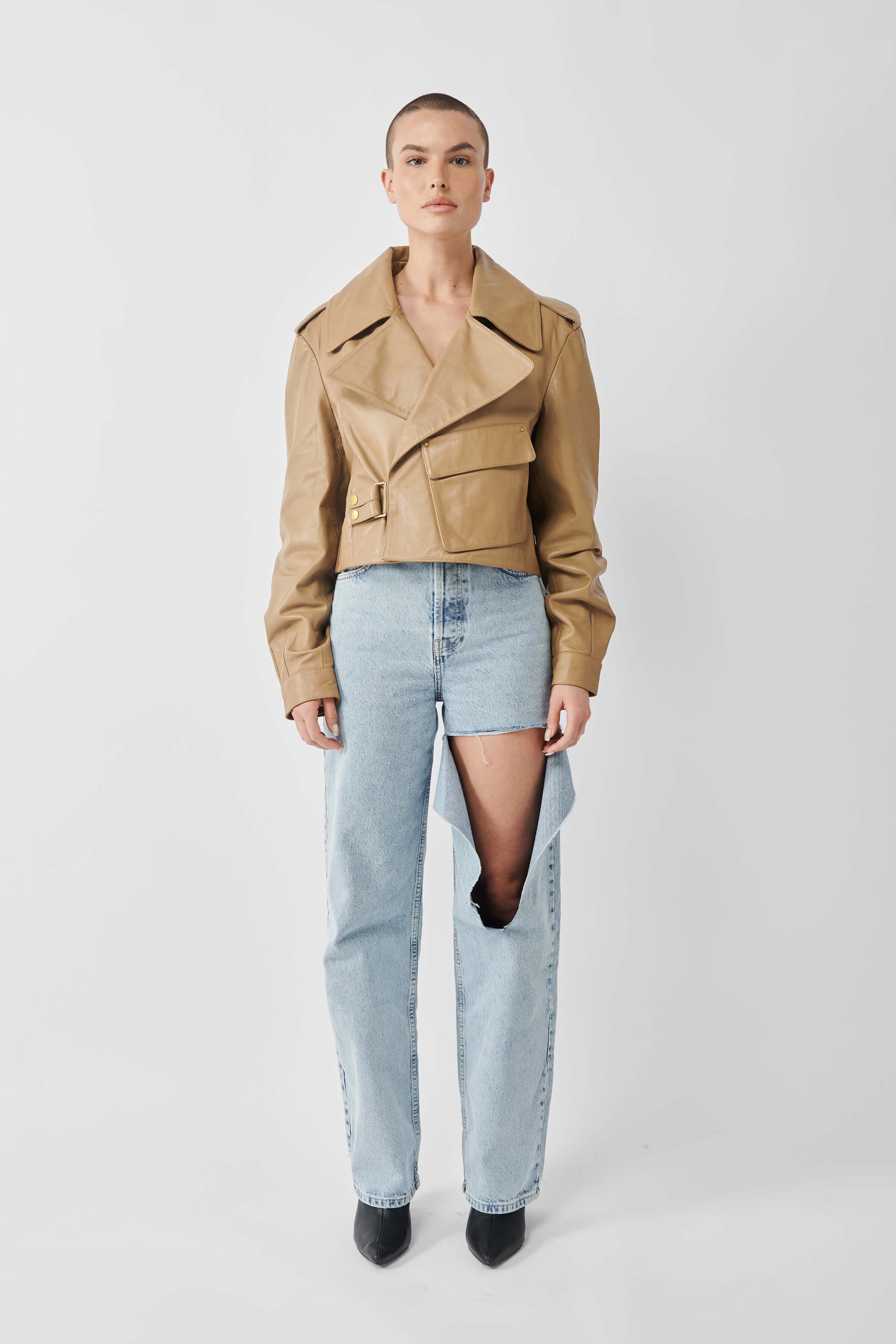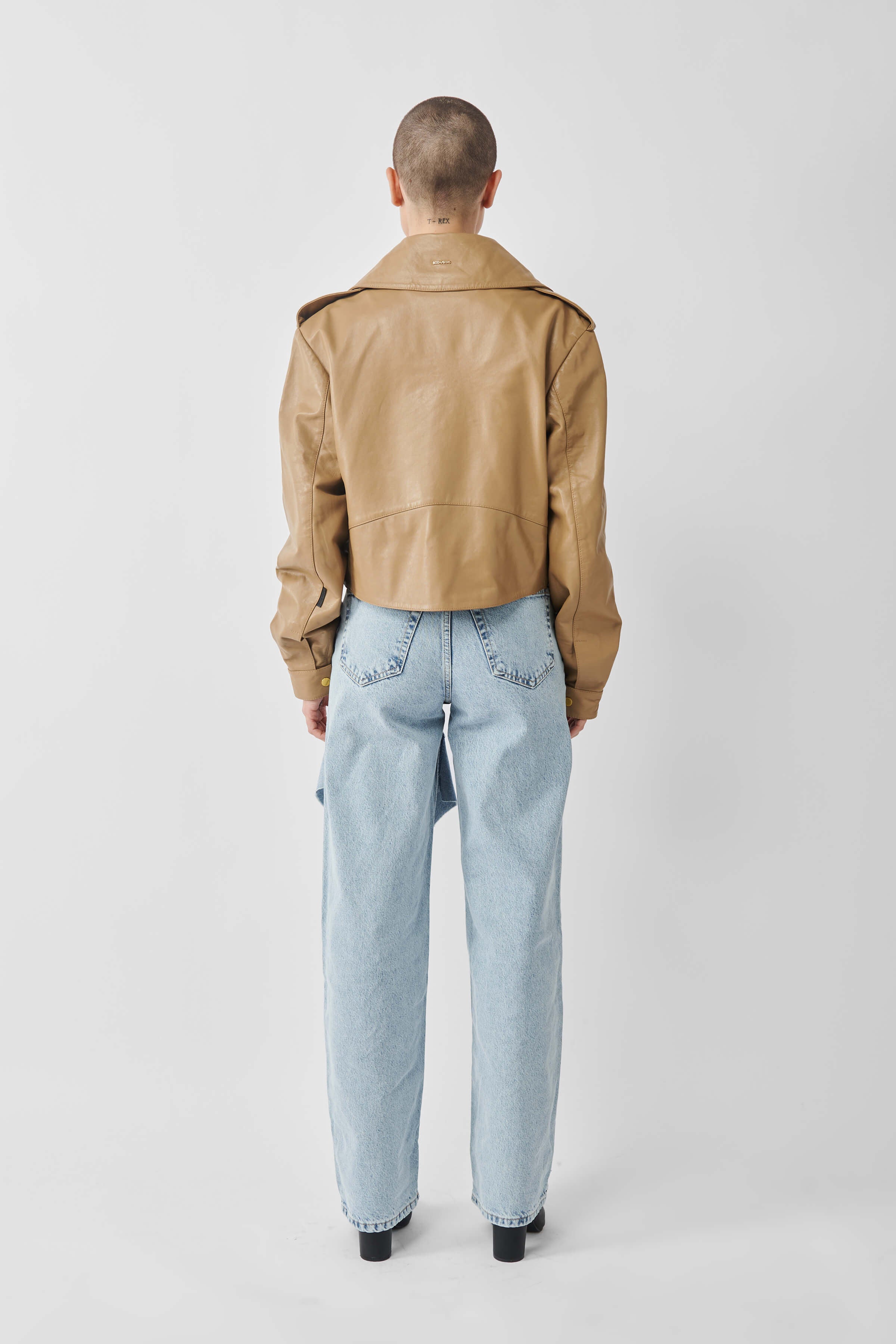 The Cropped Blouson embodies timeless and intricate craftsmanship, handcrafted from premium chrome free lambs leather with an Italian viscose twill lining. Its minimalist design features understated details, making it incredibly versatile and a wardrobe staple that can be styled with existing pieces in your wardrobe.