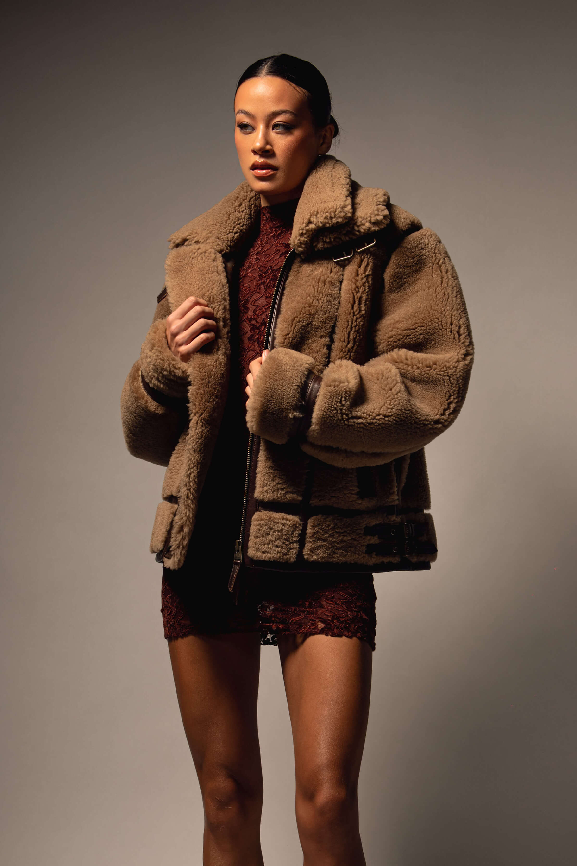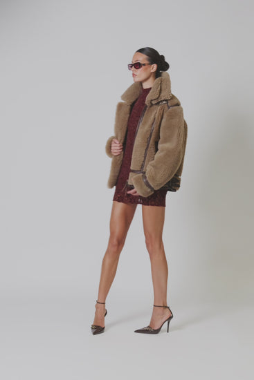 The Kodiak Shearling Jacket is a fresh evolution of one of BODA SKINS’ most celebrated designs, reimagined for women who want to combine strength, elegance, and individuality in their wardrobe. Inspired by the structure of the Bronx but with a distinct identity of its own, the Kodiak introduces a bold new material story with its teddy-style shearling exterior in a versatile soft brown shade. Designed to deliver warmth and sophistication in equal measure, this jacket is the definition of timeless outerwear with a modern twist.