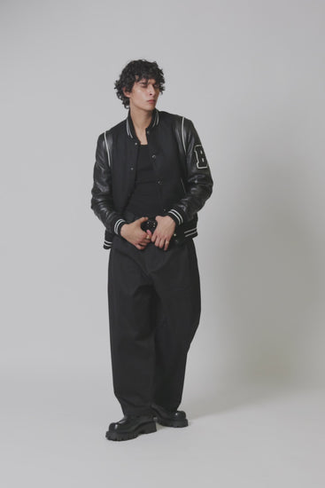 Drawing inspiration from the original varsity jackets worn by college athletes in the 1860s, our design pays homage to traditional colourways with a clean, monochrome twist. The striking black and white leather bomber jacket design creates a standout visual appeal, fusing vintage Americana with modern luxury.
