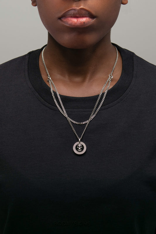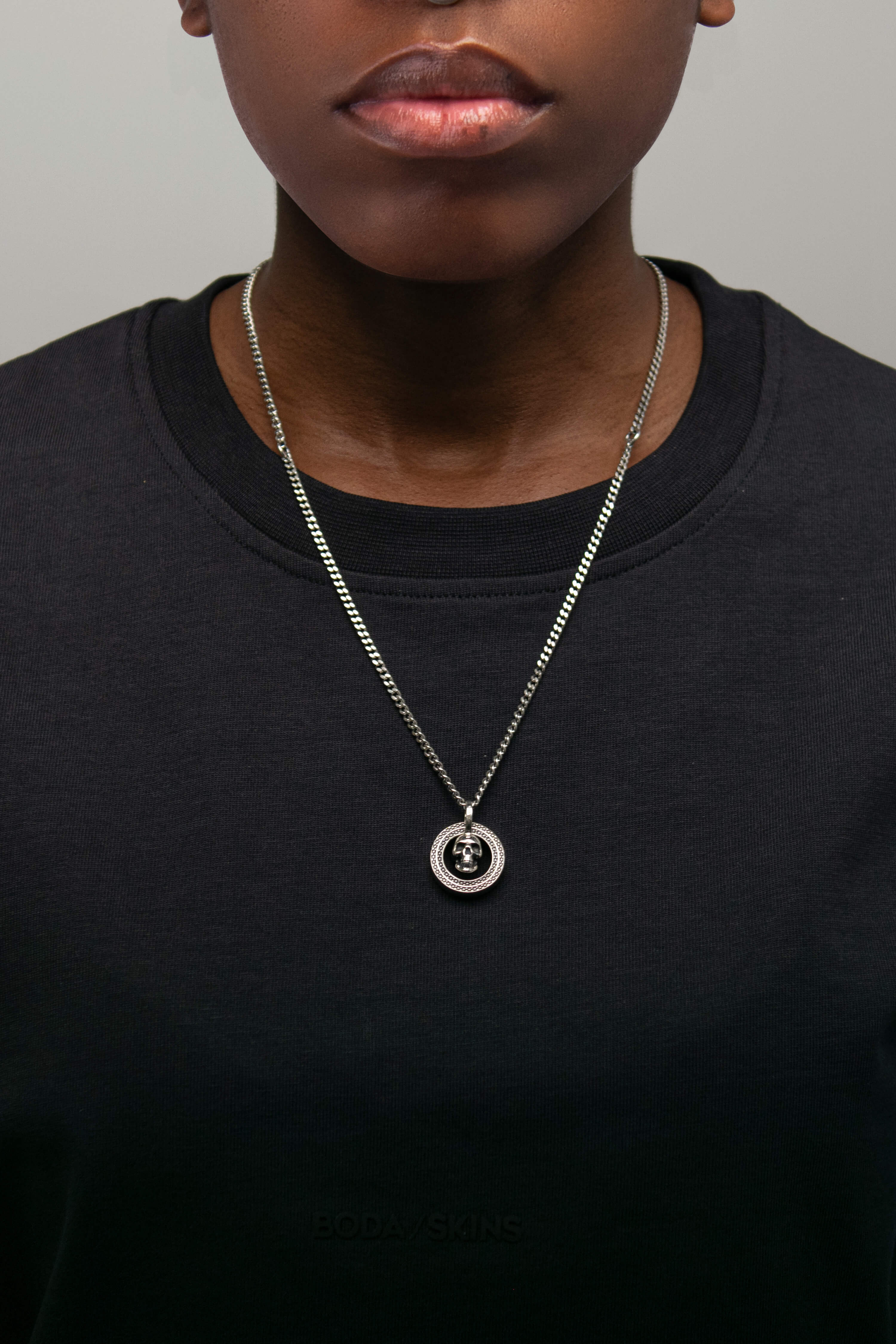 The Modular Skull Pendant + Chain is designed for the free-spirits, featuring a striking torus framed 3D skull symbolising strength and protection. This piece has been meticulously handcrafted by our skilled artisans in 925 sterling silver to retain its durability and lustrous appearance. Featuring the addition of a detachable chain, you can achieve a minimal or layered look to effortlessly compliment your outfit of choice.