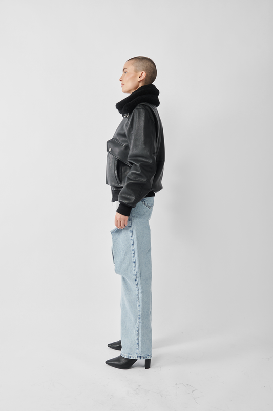 Our latest statement shearling, the Spitfire, takes on a classic flight jacket silhouette infused with BODA SKINS edge. The Spitfire embodies all the elements of quality, functionality and exclusivity that you'd expect from our signature shearling styles; crafted from 100% Cows Leather with a bold double shearling collar, statement pockets and contrasting premium silver branded hardware throughout.