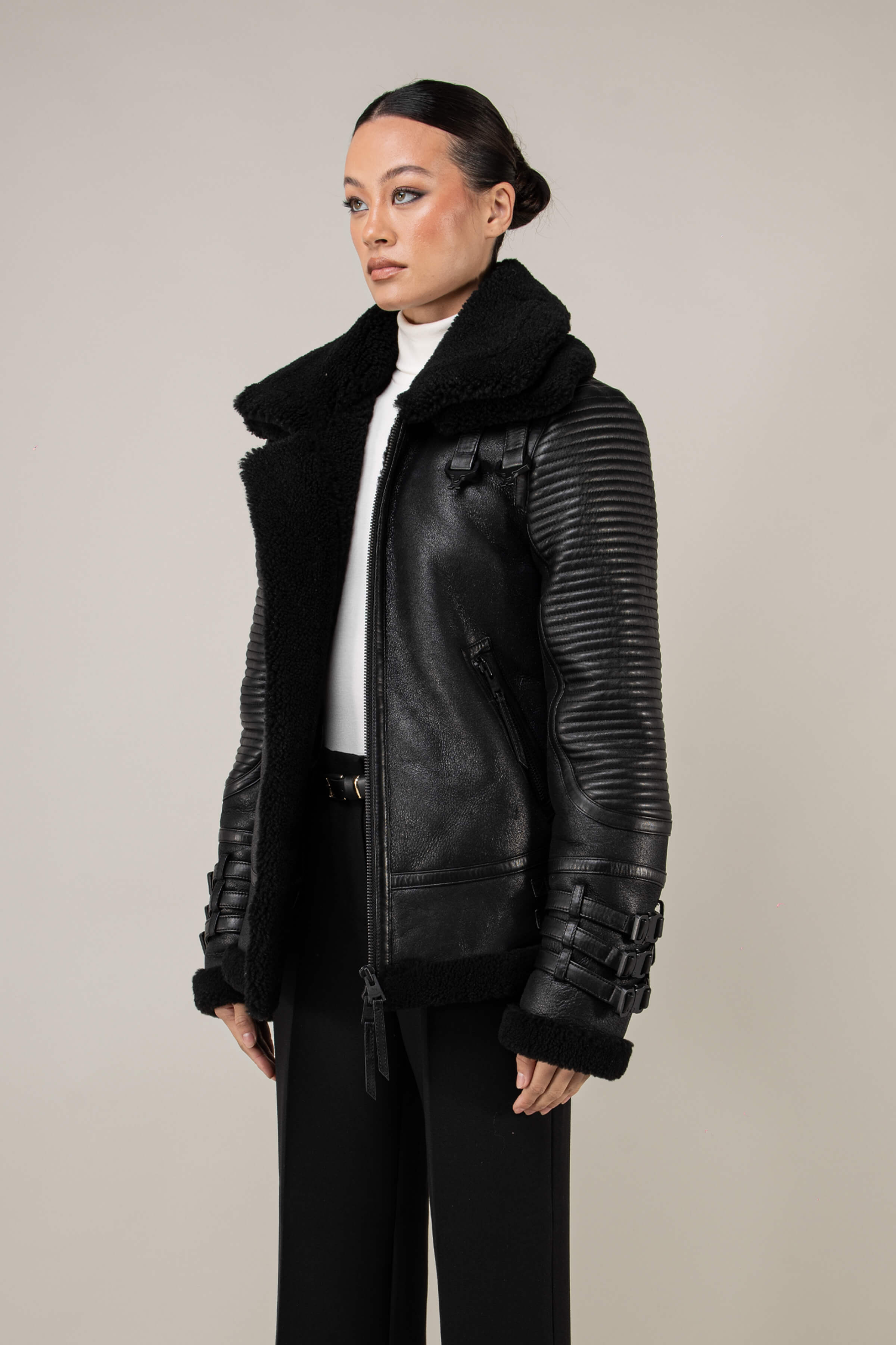The Warrior 3.0 shearling jacket is a modern reinvention of one of our most iconic BODA SKINS silhouettes. Engineered for strength, style, and everyday versatility, this updated generation brings subtle refinements to a legendary piece, making it the ultimate luxury shearling jacket for women who want warmth without sacrificing edge.