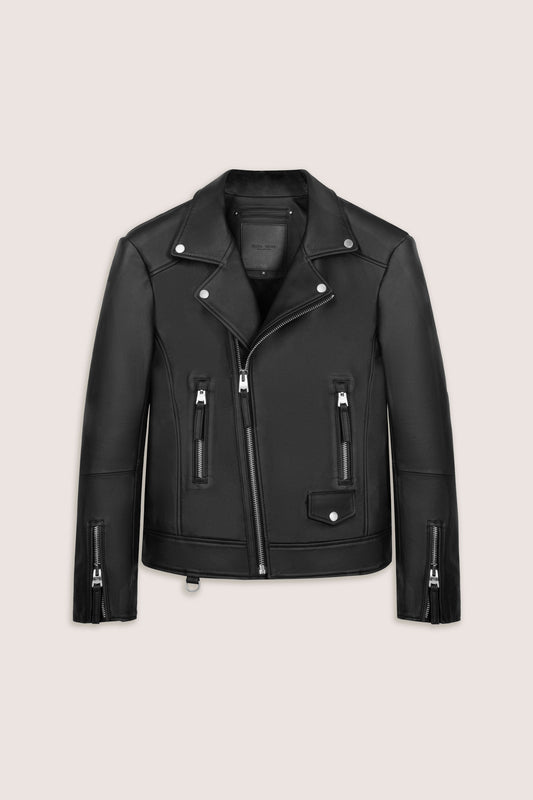 Whether you're searching for the iconic black leather biker jacket, a refined café racer, or a minimalist bomber, this collection delivers wardrobe staples that fuse effortless edge with refined tailoring. Every piece is built to last – with durable zippers, hand-finished detailing, and a fit that only improves with time.