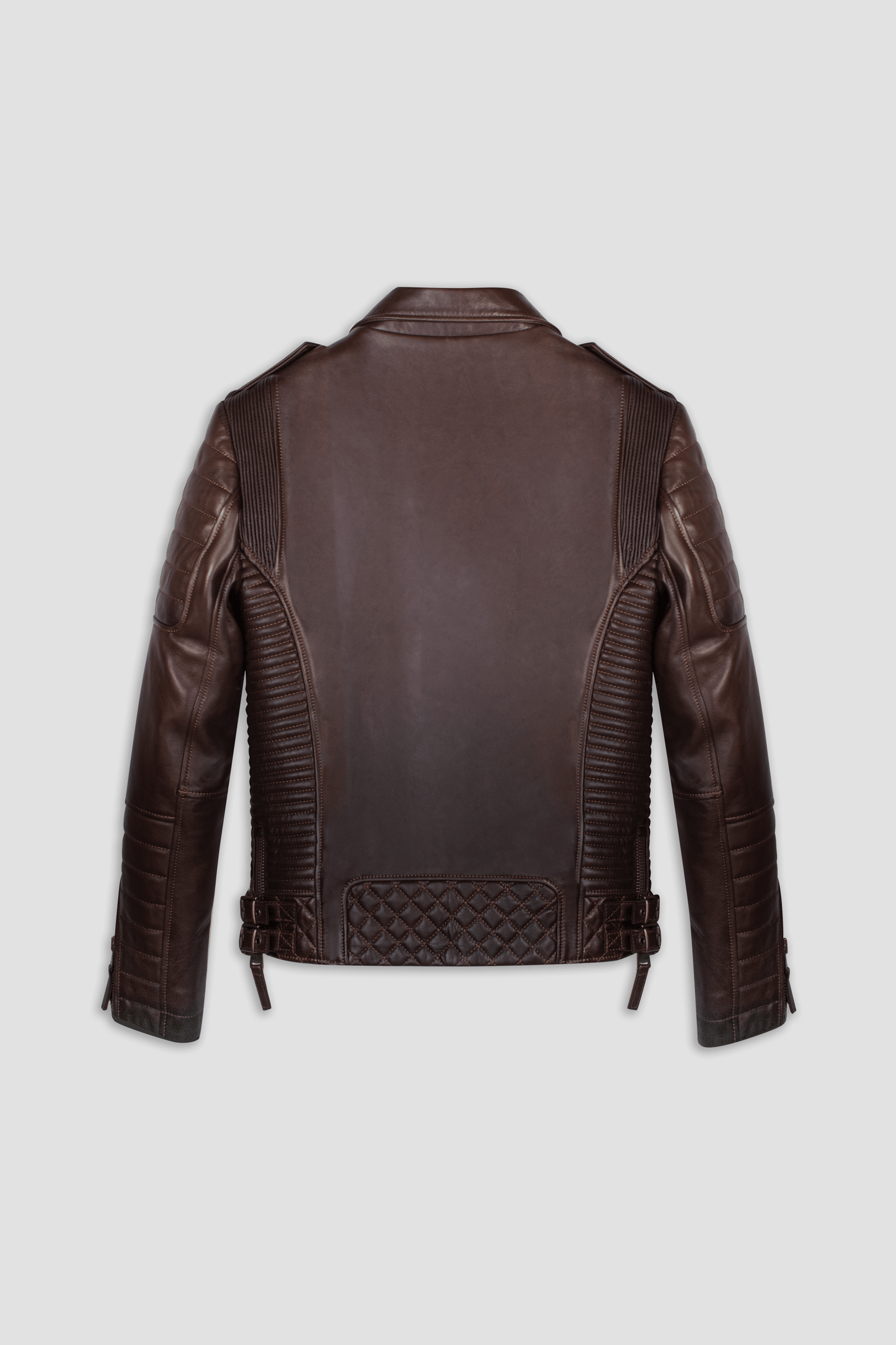 The Kay Michaels: Antique Brown embodies our latest deep wax brown finish and branded antique brass hardware, yet maintains all the classic detailing of our iconic Kay Michaels silhouette; featuring its asymmetrical zip, quilt detailing and slanted pockets. Antique by name, and by nature, the leather is drum painted, hand dyed and sealed with heat through an artisanal process to achieve a durable and lasting finish.