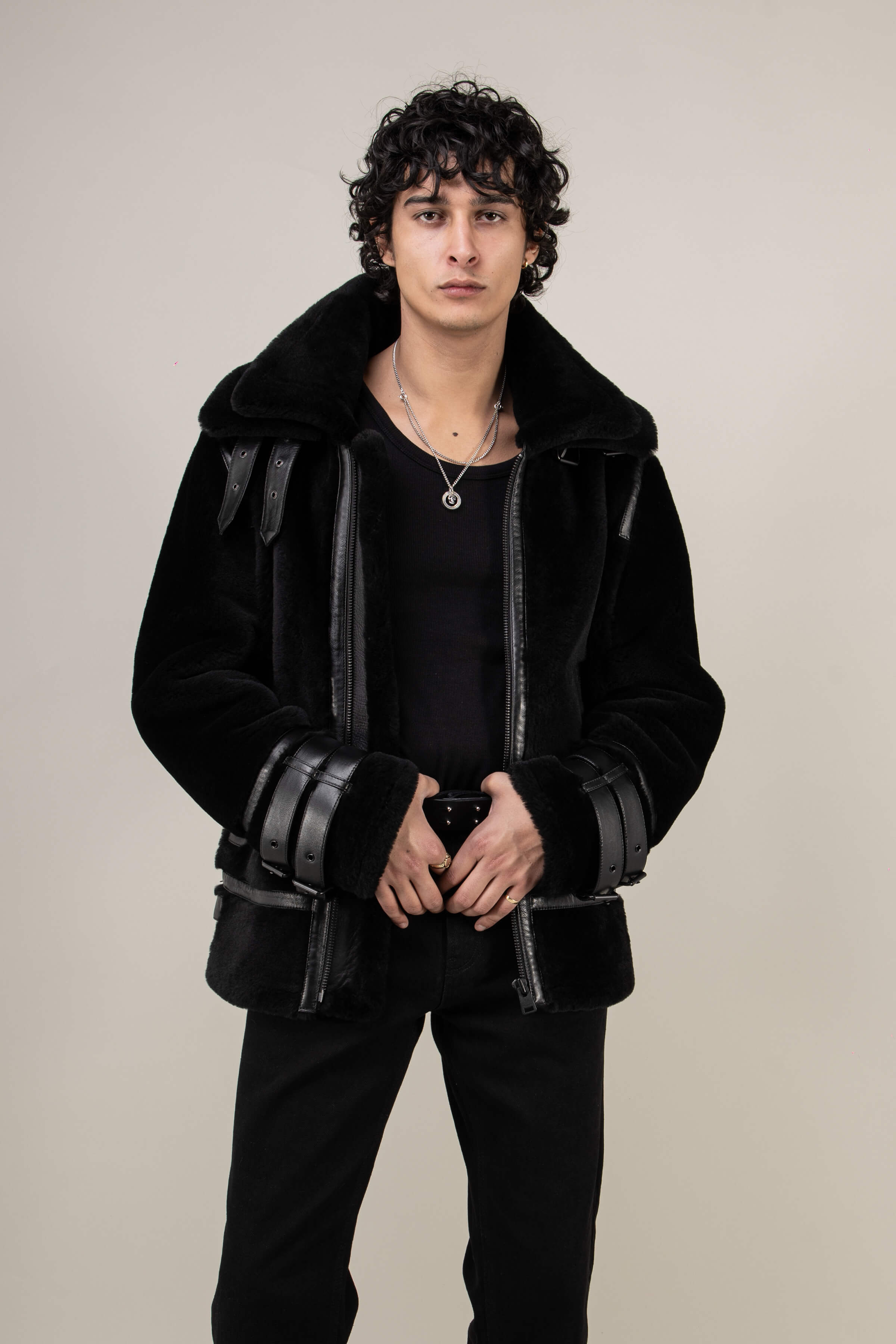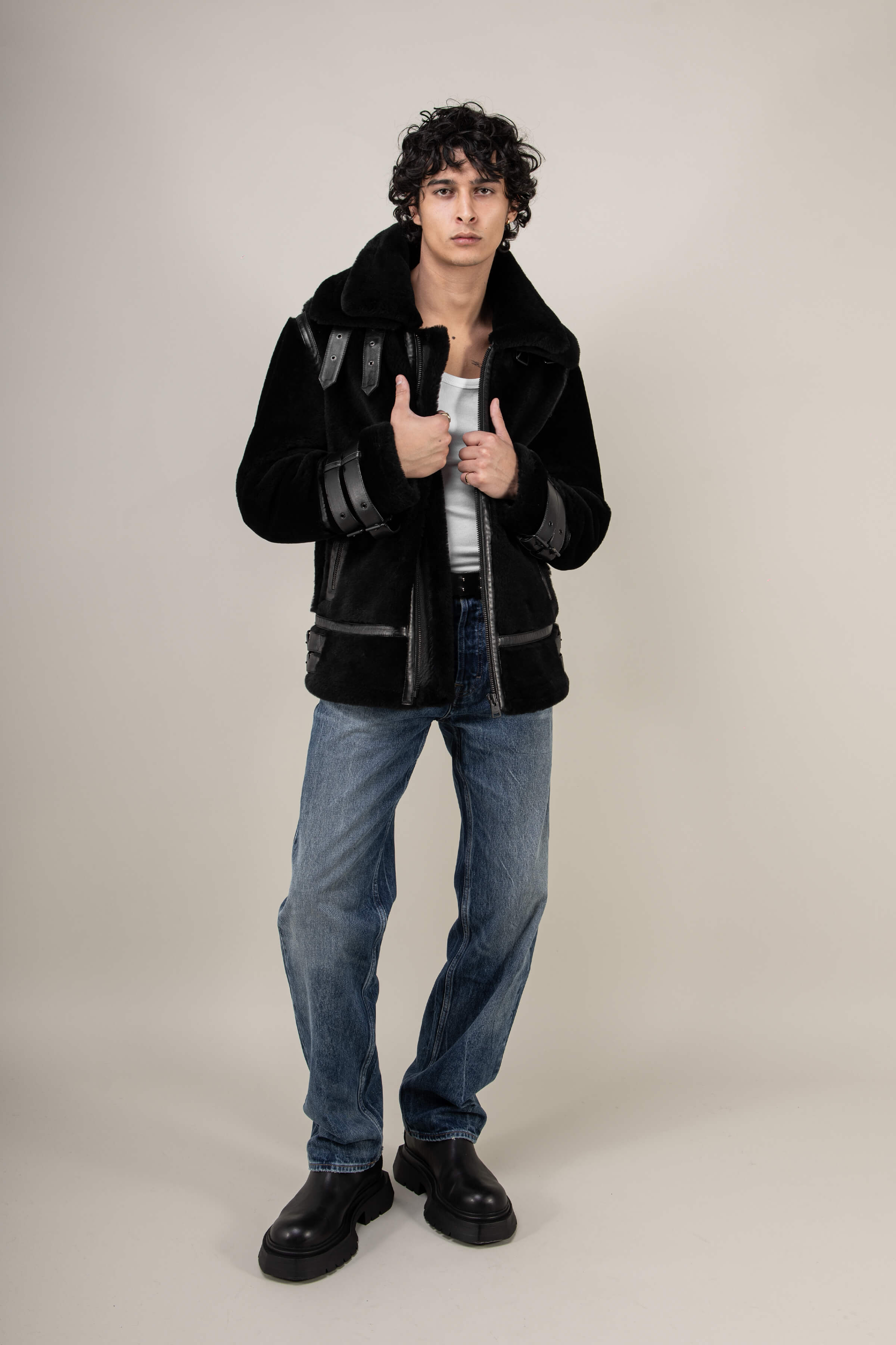 POLAR 3.0 NOIR – Luxury Shearling Jacket with Nappa Detailing