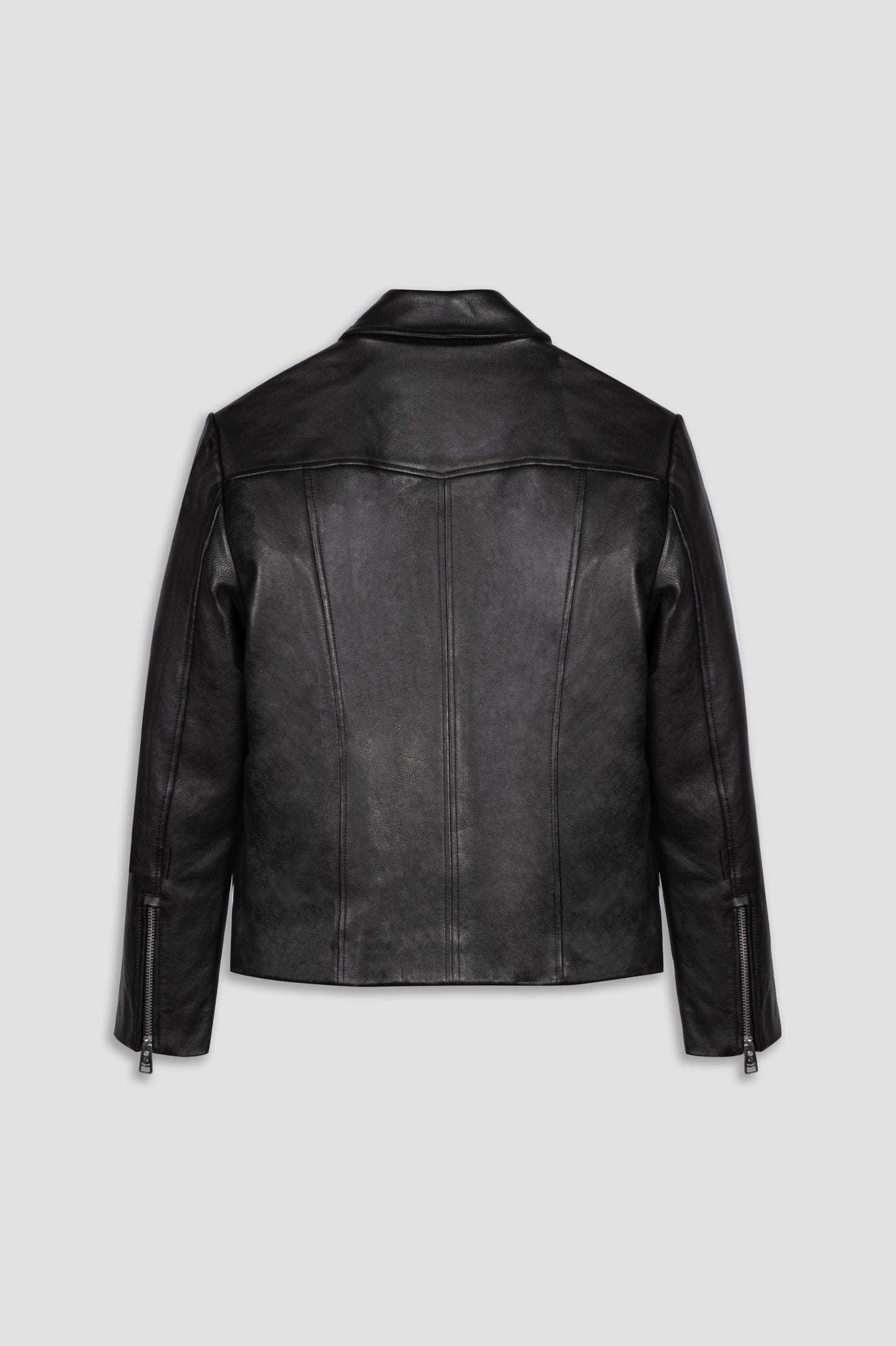 The Hendrix is the definition of cool simplicity. This pristine silhouette has been crafted from premium British lamb's leather, is fitted with a smart, symmetrical classic collar, and features suede detailing at the collar stand with sail stitch. The Hendrix features our exclusive paisley print lining and makes layering effortless.